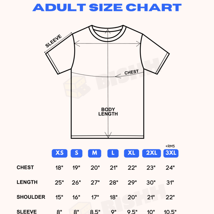 T-shirt ni dicetak pada 190GSM Premium Cotton Tee yang selesa, lembut dan sesuai pakai harian. Fit yang clean, material yang berkualiti — senang match dengan apa saja style.